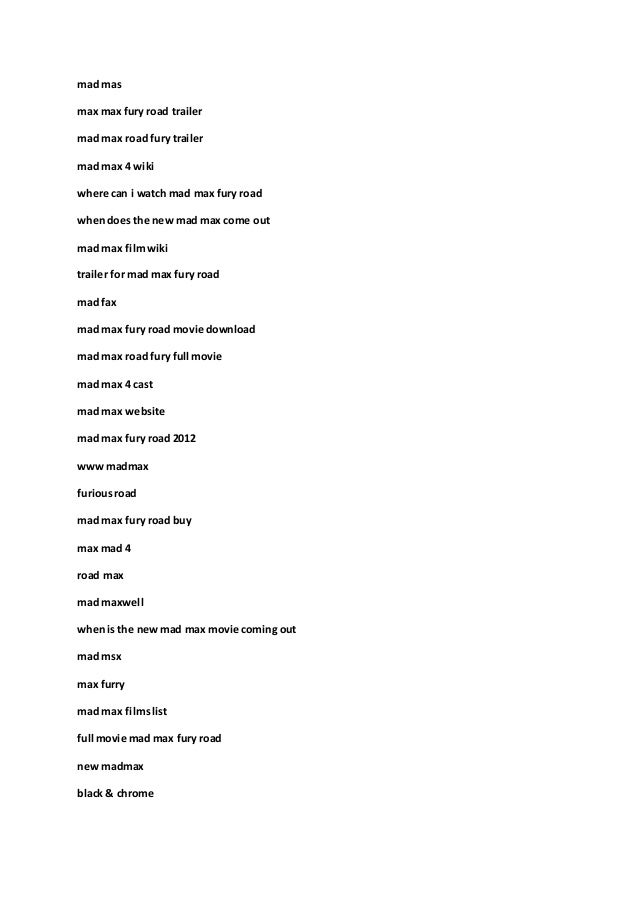 Mad Max: Fury Road review - Tom Hardy is a macho... | The Guardian Watch Mad Max: Fury Road trailer in full - video Guardian. Max is here a lone wolf, a survivor of the vaguely delineated global catastrophe that has made oil, water and bullets rare commodities thereabouts, and he is tormented by flashback memories of the child he couldn't save. Mad Max: Fury Road - Wikidata 2015 Australian post-apocalyptic action film directed by George Miller. Mad Max: Why The Original Movie Is So Different To Fury Road Mad Max and Mad Max: Fury Road are two sides of the same coin. One has kept a devoted cult following for four decades while the other has gained a worldwide level of fame. What's more, they're not even narratively tied together, save for George Miller's action-fueled storyworld and his enduring... Mad Max: Fury Road / Nightmare Fuel - TV Tropes A page for describing NightmareFuel: Mad Max: Fury Road. Max's Sanity Slippage after the loss of his family is even amplified further here, where he's shown … Following. Nightmare Fuel / Mad Max: Fury Road. Go To.