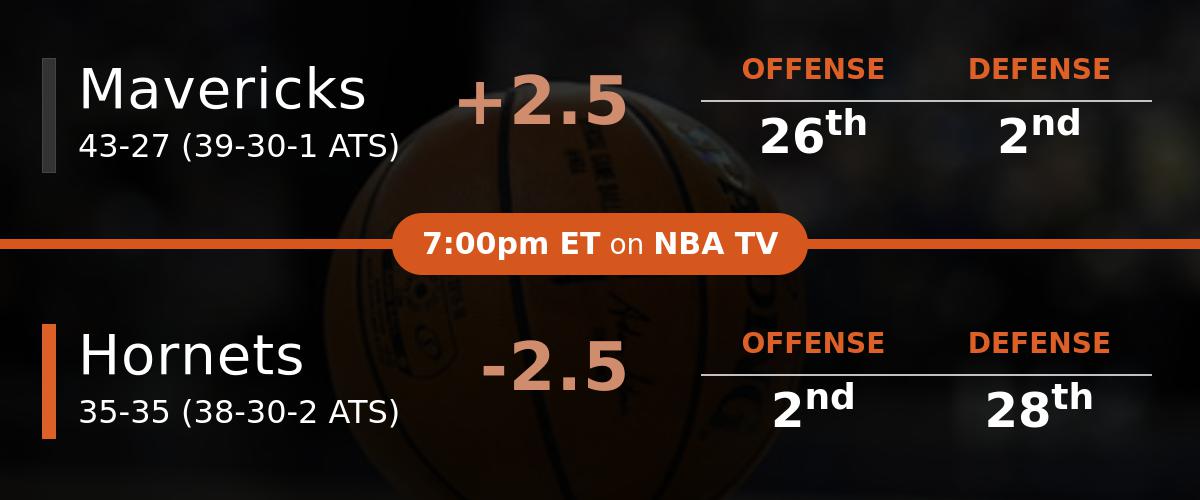 Hornets vs. Mavericks Preview: Odds, Lines, Predictions The Hornets' fast-paced offense and the Mavericks' more deliberate attack combine for the over-under of 223.5. Since the All-Star break, Charlotte's average scoring output is 121.3, while Dallas'...